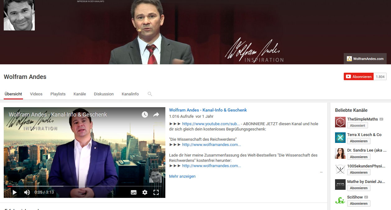 Besuchen Sie diese Kanäle, schauen Sie sich die Optimierungen an und beobachten Sie, wie sich diese Kanäle die nächsten Wochen, Monaten und Jahren entwickeln...